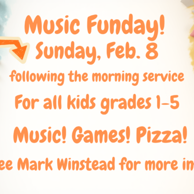 Feb. 8: Music Funday for Kids Grades 1-5 After the Morning Service February 8, 2026 12:00 pm – 2:00 pm